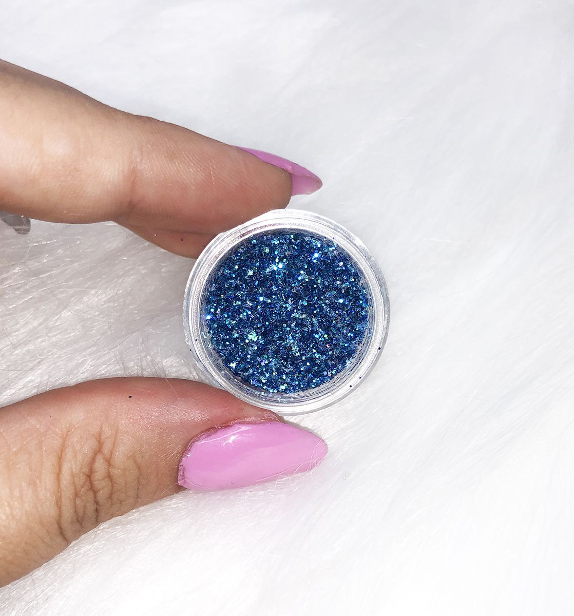Com uma mistura de tons de azul, o glitter Aruba é uma homenagem ao mar de um dos mares mais bonitos do mundo.